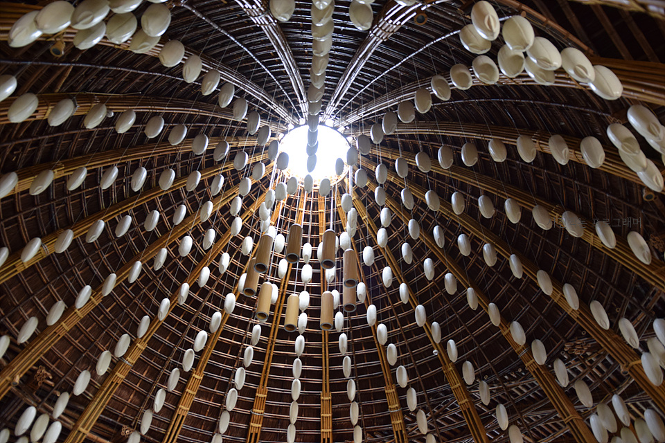 식당 천정에는 쌀알들이 매달려 있다. 독특한 인테리어