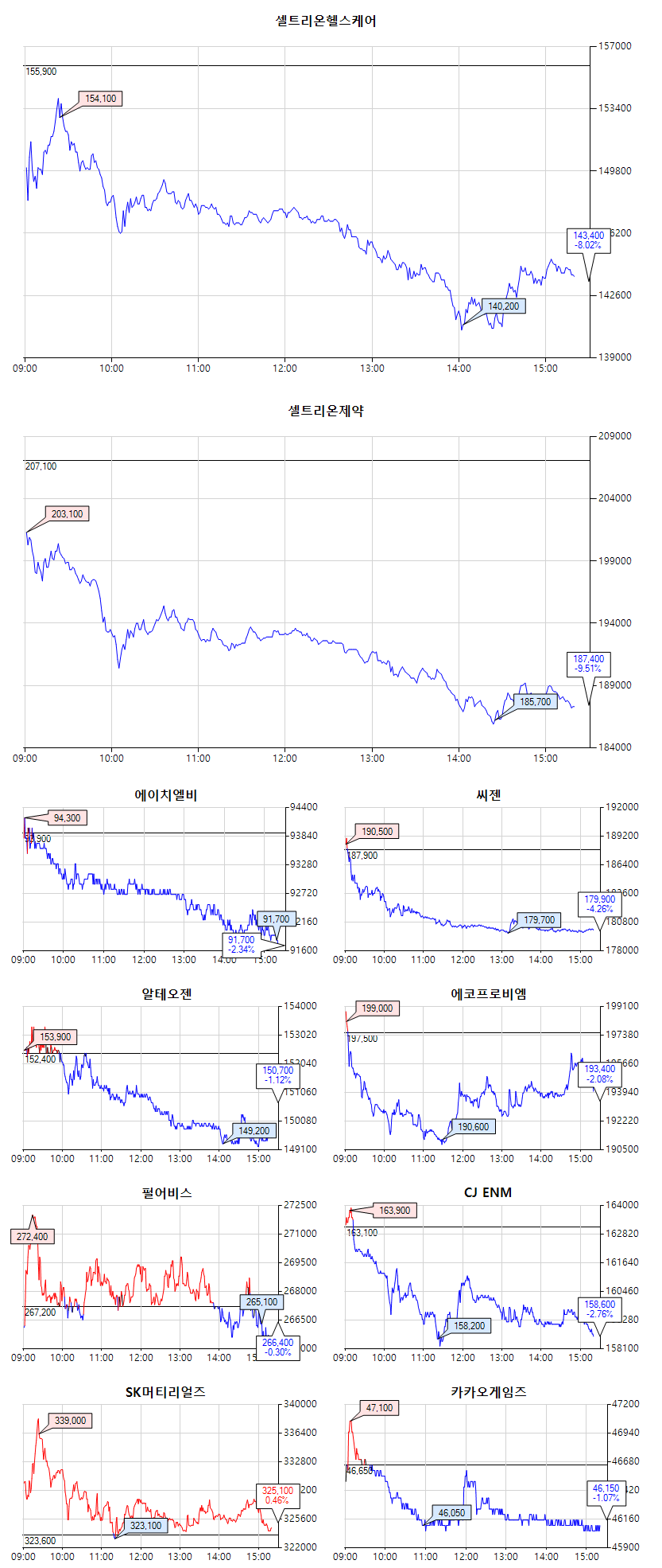 셀트리온 329,000 (-23,500, -6.67%)