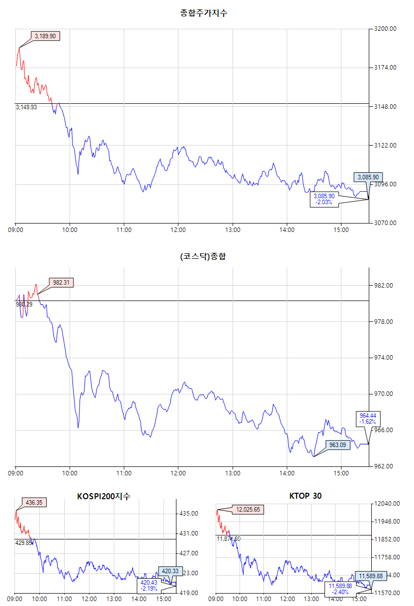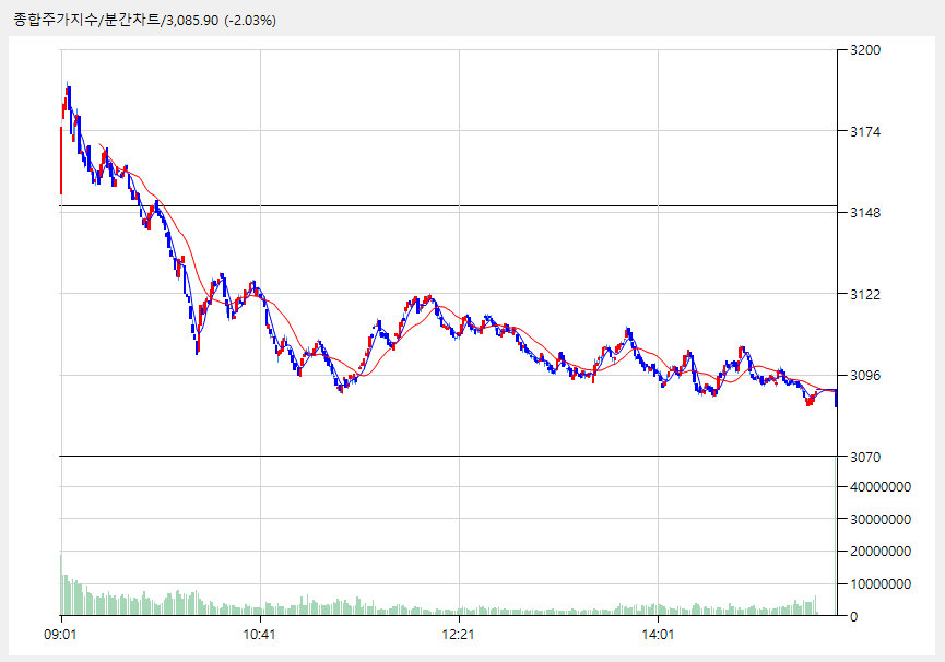 종합주가지수 3,085.90 (-64.03, -2.03%)