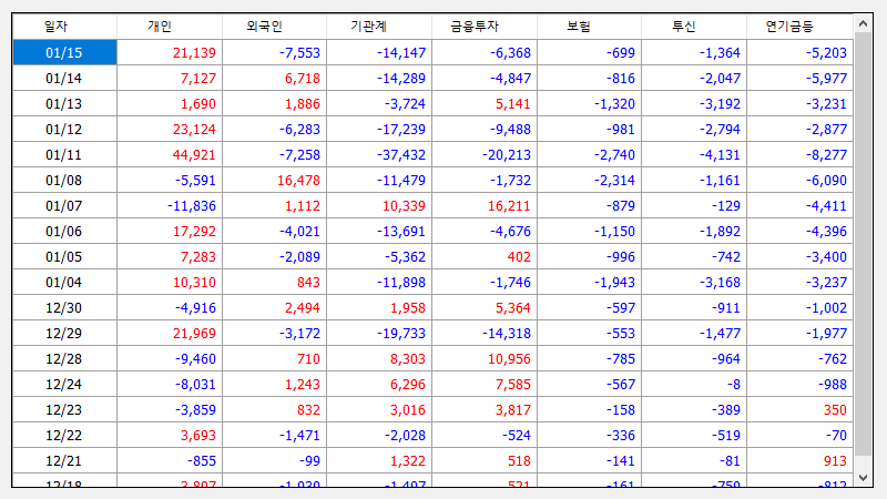 매매동향(외국인/기관/개인)