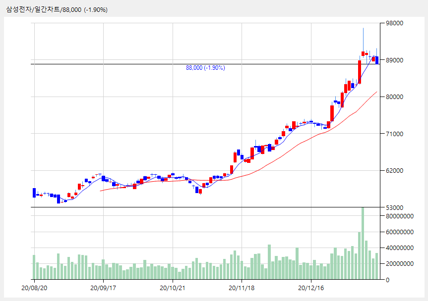 삼성전자 88,000 (-1,700, -1.90%)