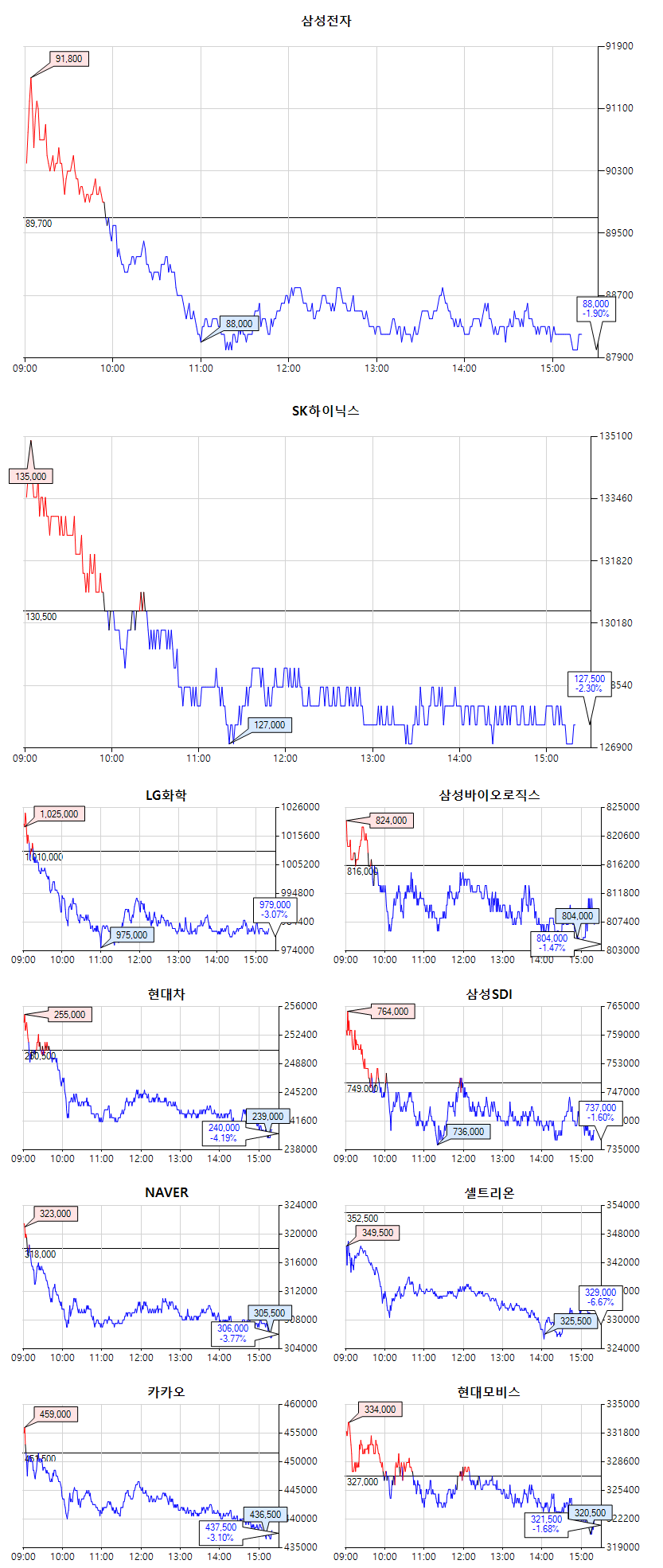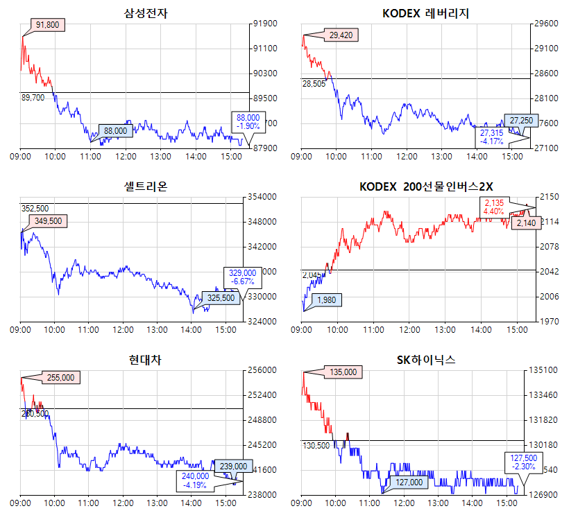 특히 장 시작하자마자 지수가 급등하다가 계속 하락하는 바람에 하루 등락폭이 컸네요.