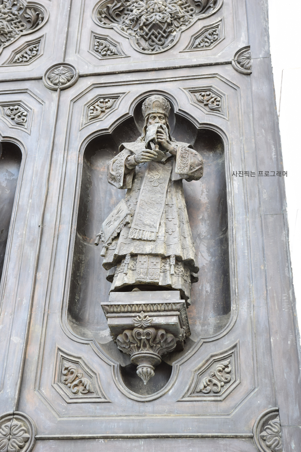 성인들의 조각으로 둘러싼 문