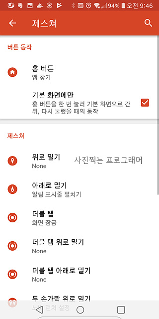 그 외 아래로 밀기나 더블 탭 등 몇가지 설정도 유용