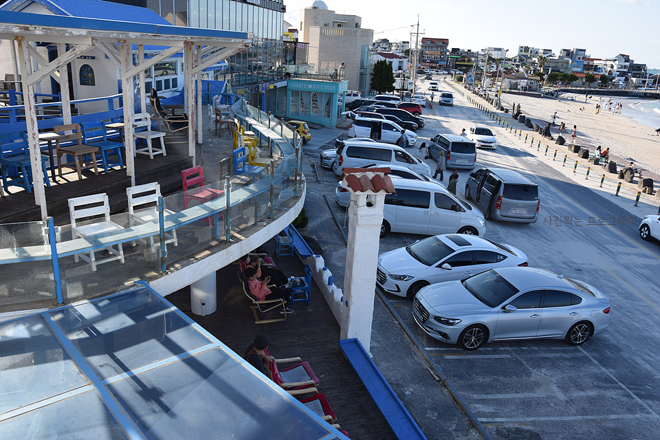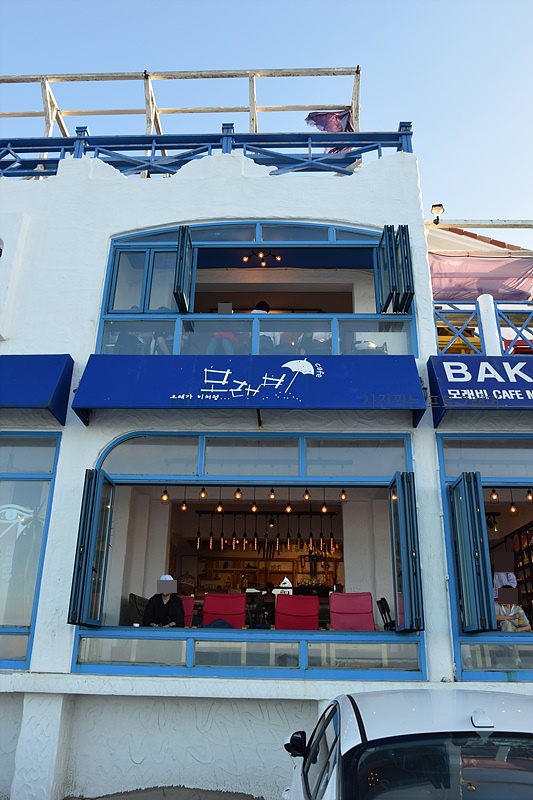 2층에 창가 자리에 닫힌 창문을 제쳐 열었다. 어서 시원한 바다 바람을 맞아 보자