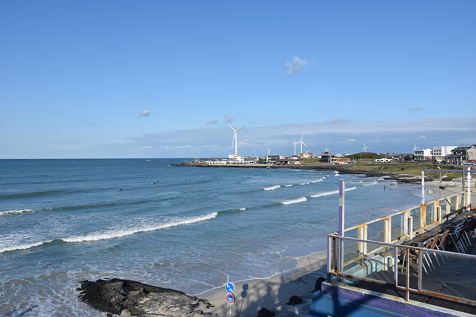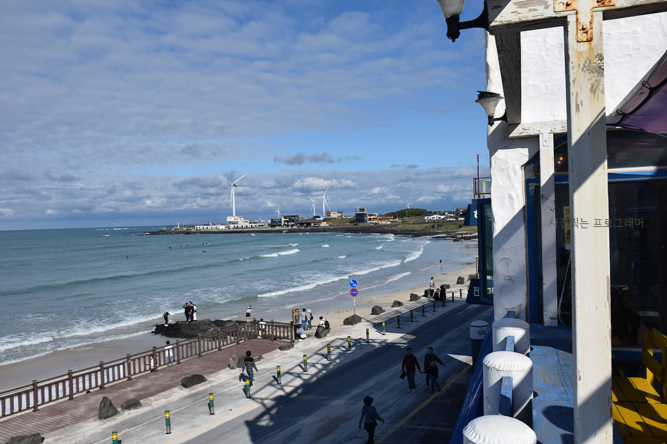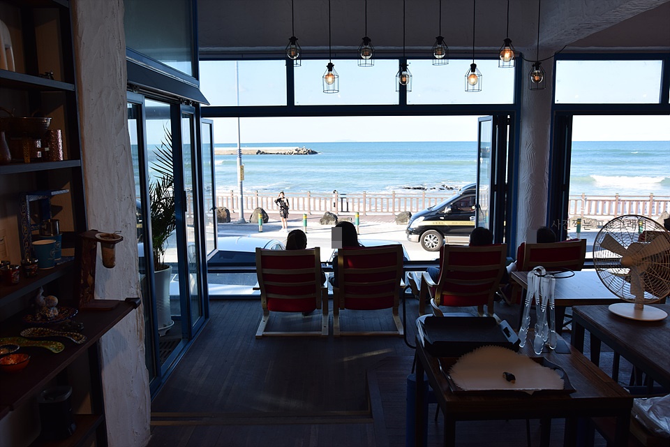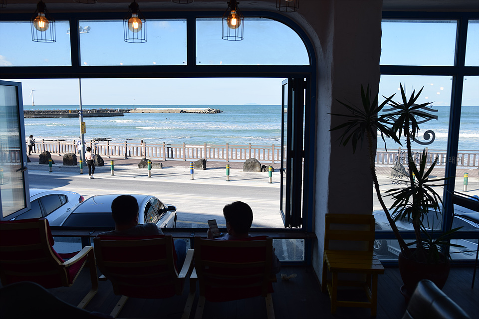 월정리에는 바다를 향해 창문을 활짝 개방한 멋진 전망의 카페가 여러 있다.