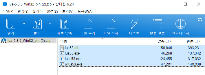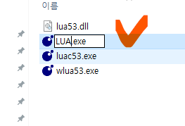 단, lua53.exe 는 파일이름을 lua.exe 로 변경한다.