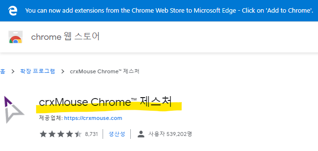 다행히 엣지에서 크롬 스토어(?)를 열고 크롬 확장 기능을 가져와 설치가 가능하다.