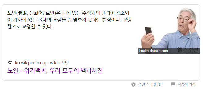 위키에 찾아본 노안(老眼)은 다음과 같다