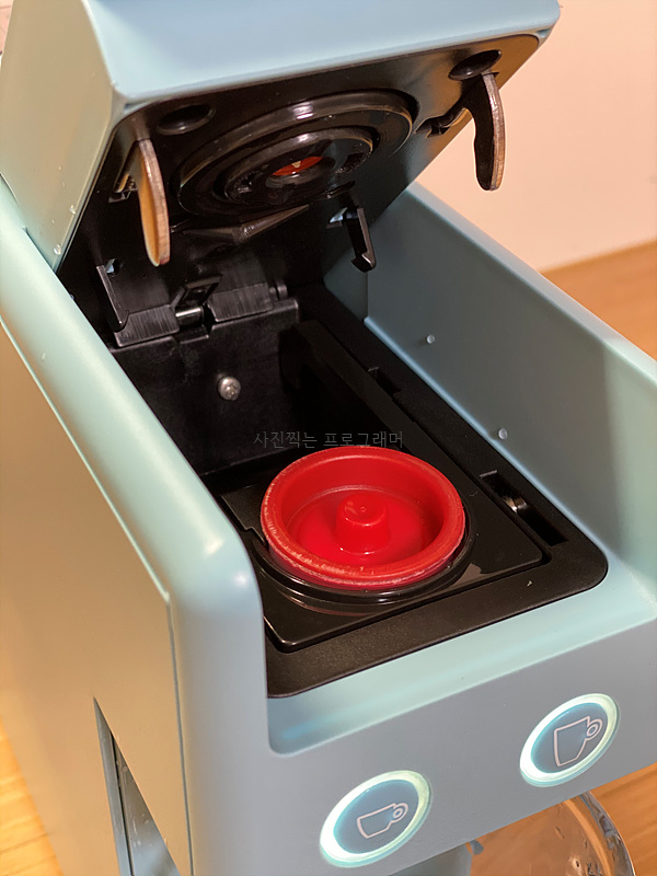 나중에 기기 앞부분을 빼 내서 사용한 캡슐은 버리고 청소하면 끝.