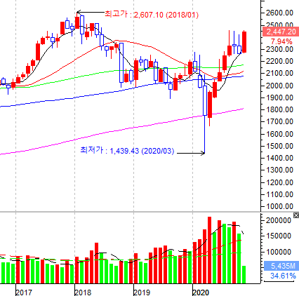2018.1월 고가를 넘길 수 있을 지 이번주 주가 흐름이 기대됩니다.