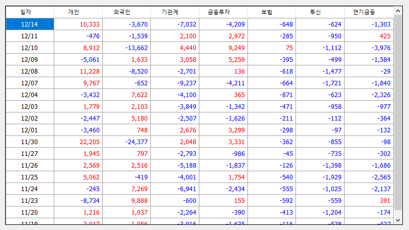 매매동향(외국인/기관/개인)