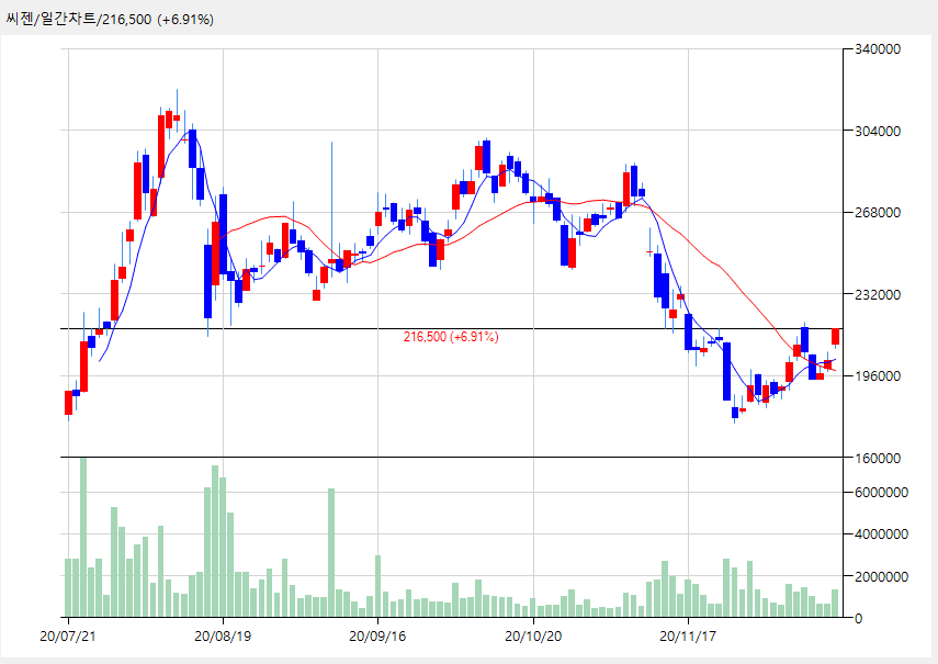 씨젠 216,500 (+14,000, +6.91%)
