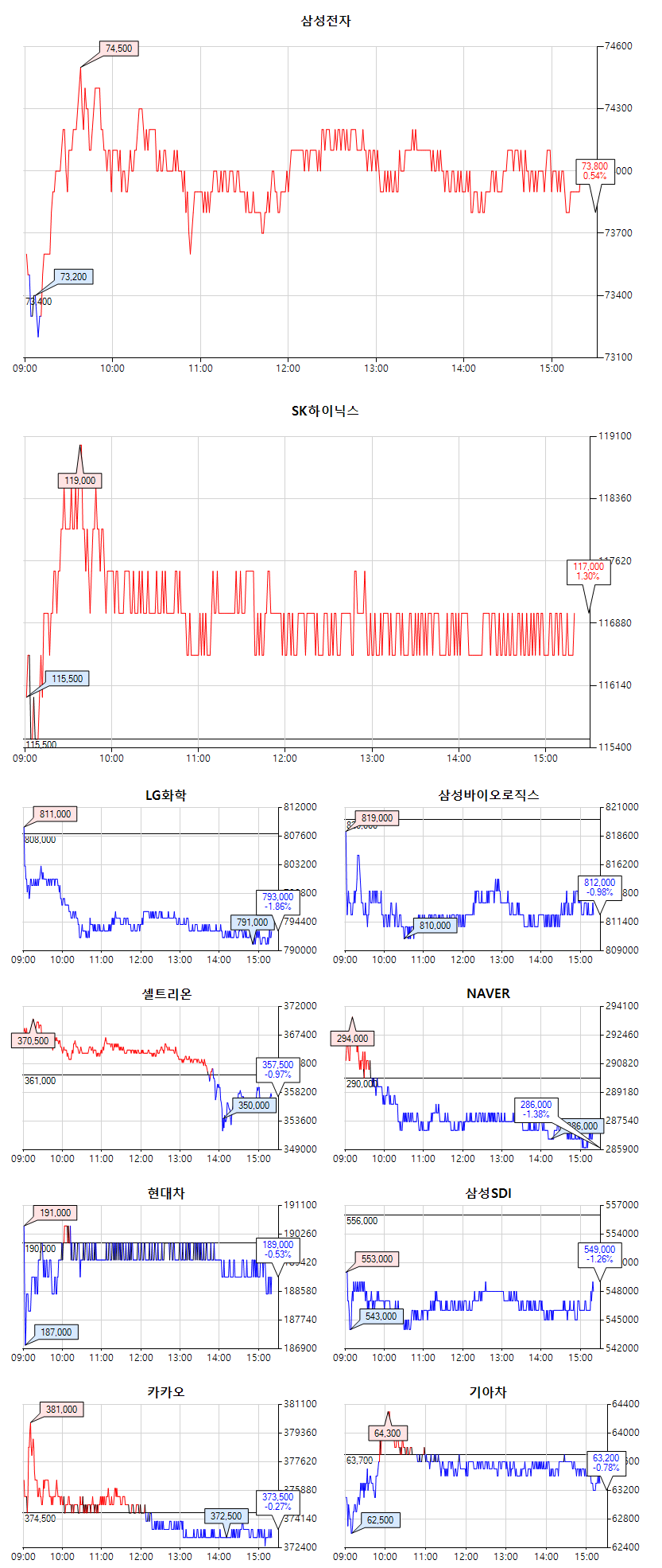 삼성전자는 강보합으로 73,800원으로 마감했네요.