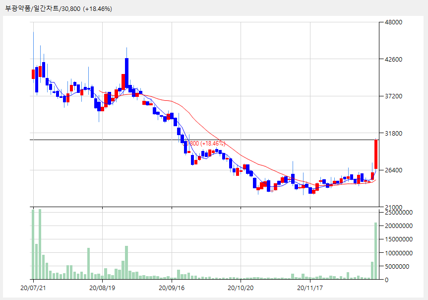 거래소 거래대금 4위 부광약품 30,800 (+4,800, +18.46%) 차트