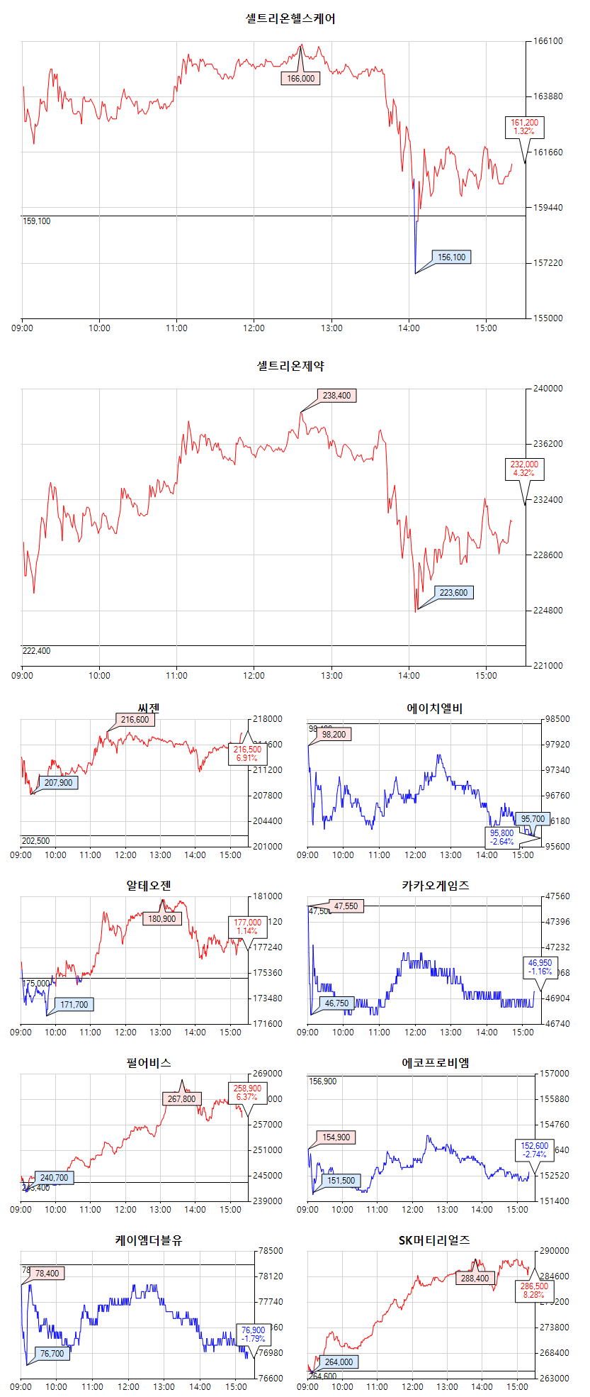 셀트리온 357,500 (-3,500, -0.97%)
