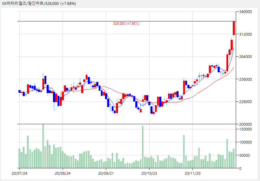 SK머티리얼즈 328,000 (+23,400, +7.68%) 차트