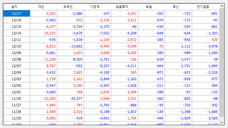 오늘은 외국인과 기관계에서 매도를, 개인은 순매수를 했습니다.