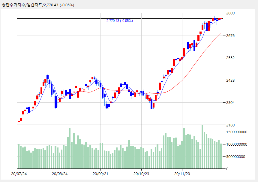 종합주가지수 2,770.43 (-1.36, -0.05%)