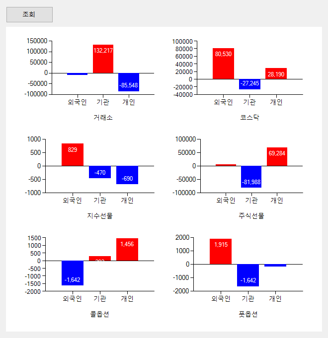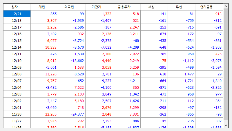 결국 기관은 1,322억 순매수, 개인과 외국인은 순매도를 기록했습니다.