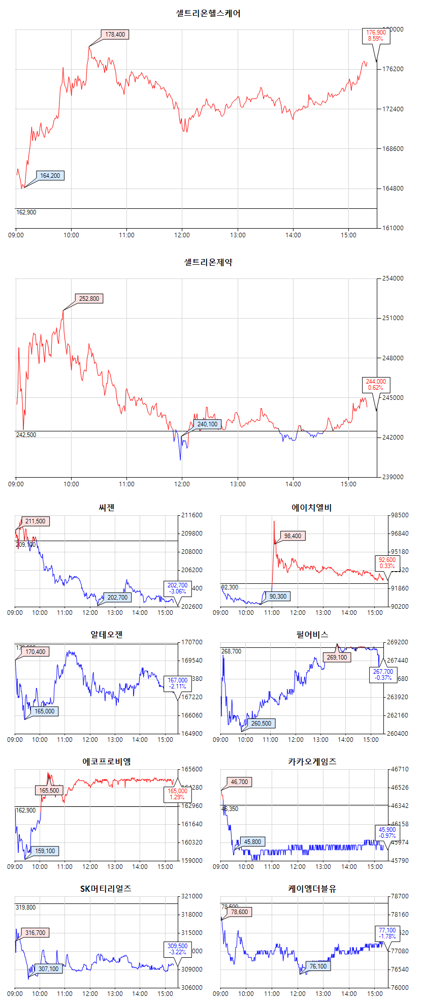 셀트리온헬스케어 176,900 (+14,000, +8.59%)