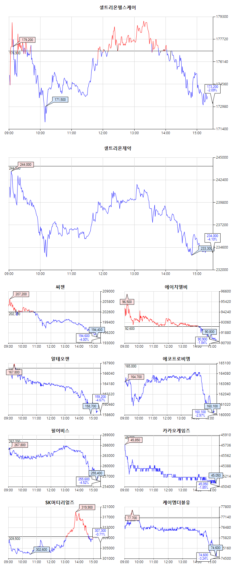 셀트리온헬스케어 173,200 (-3,700, -2.09%)