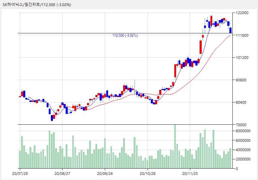 SK하이닉스 112,500 (-3,500, -3.02%)