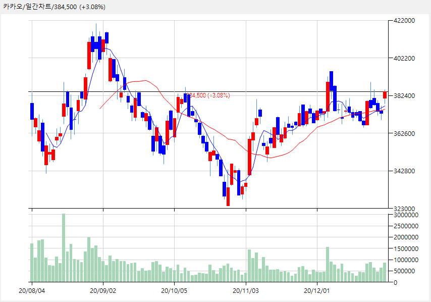 카카오 384,500 (+11,500, +3.08%)