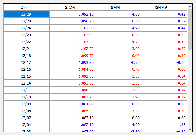 환율은 사흘 연속 하락 중입니다.