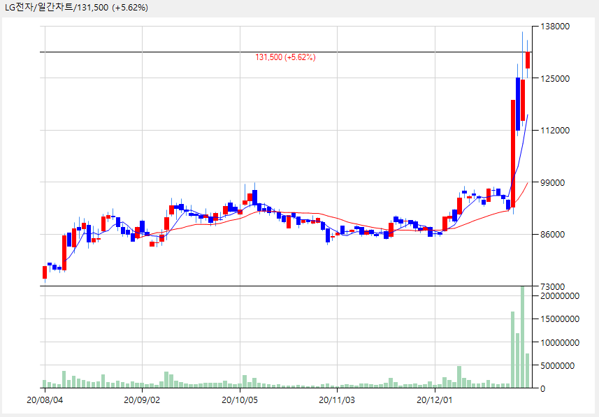 LG전자는 어느새 131,500원까지 상승했습니다.