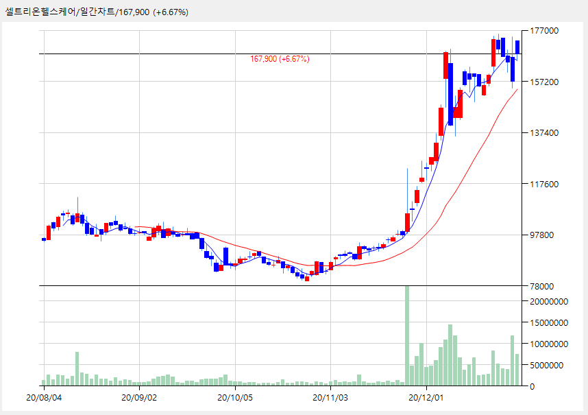 셀트리온헬스케어 167,900 (+10,500, +6.67%)