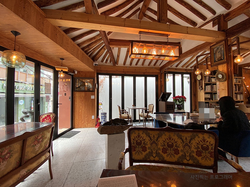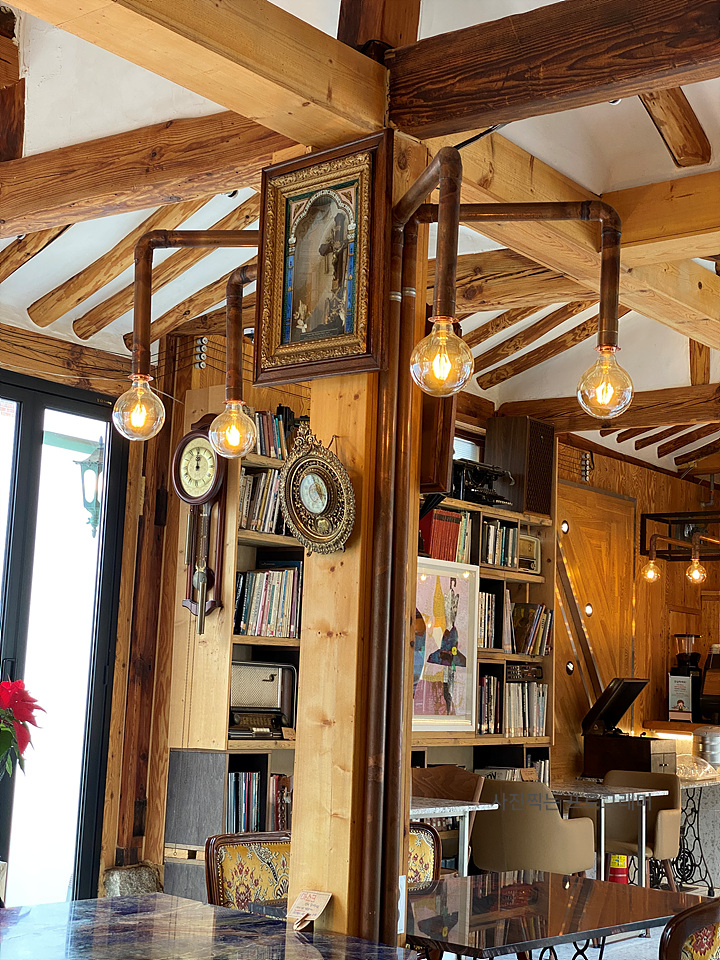 외부는 현대식인데 내부는 한옥을 기초로 엔틱한 가구와 인테리어로 상반된 분위기를 냅니다.