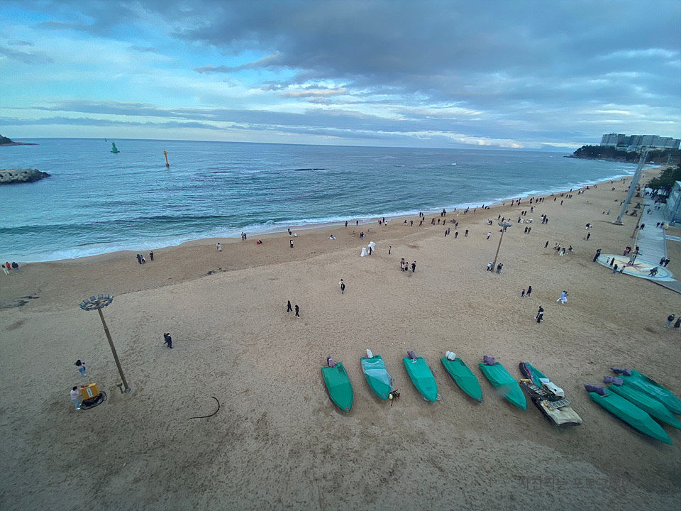 속초 해수욕장 왼쪽 바다가 보입니다.