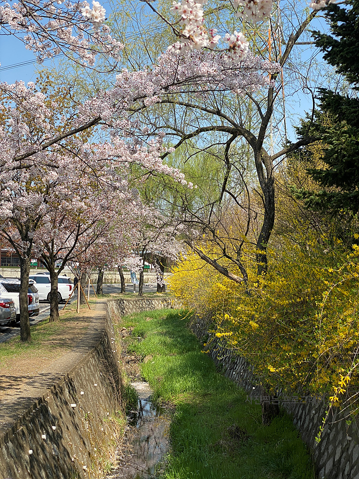 주차장에서 내리자마자 반기는 벚꽃과 개나리