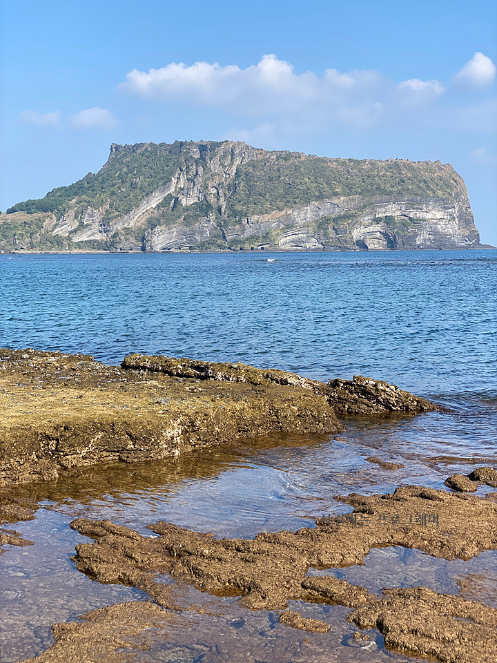 바다 깊숙이 바위가 놓여 있어 성산일출봉을 좀 더 가까이에서 볼 수 있습니다.