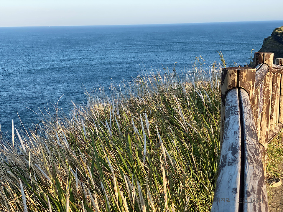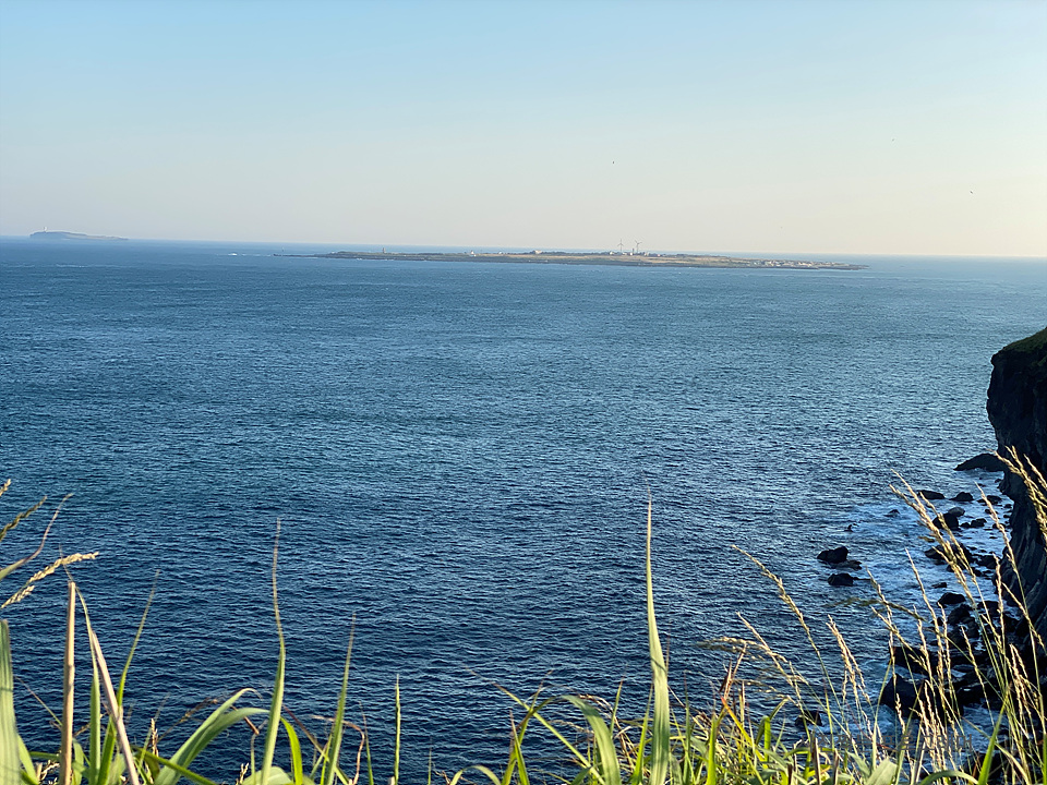 우리나라 남쪽 끝에서 절벽에 올라 보는 바다는 너무나 파랗습니다.