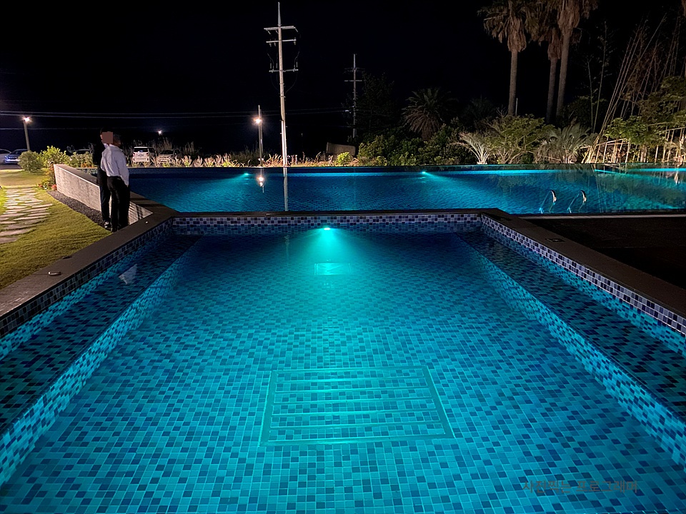 풀장에 야간 조명이 들어오니 이쁘네요