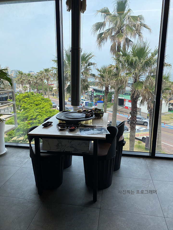 통창을 통해 함덕 해수욕장을 바라보며 식사도 가능합니다 (물론 창가 자리를 차지해야만)
