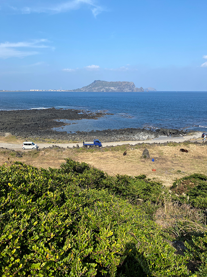 성산일출봉과 그 뒤로 우도도 뚜렷이 보이네요