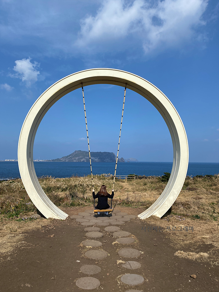 사진 한장에 그네와 성산일출봉을 한 번에 담을 수 있네요