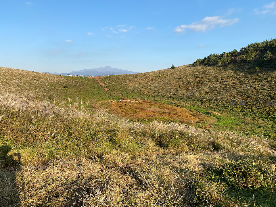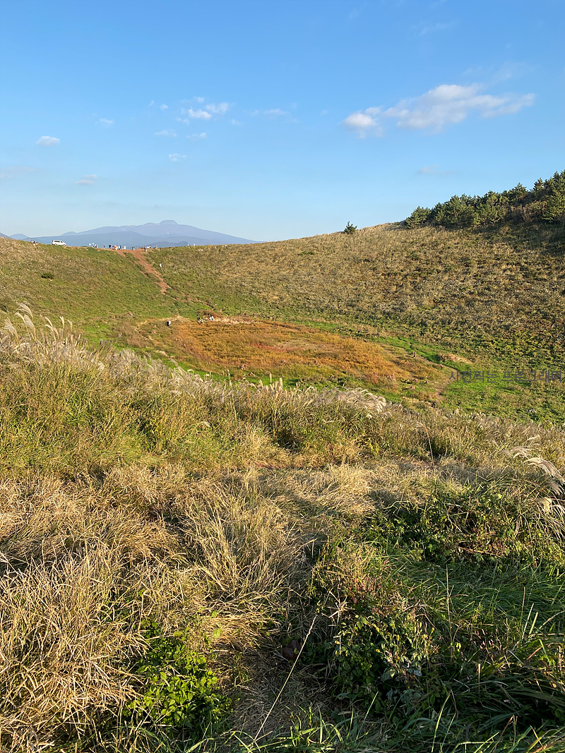 가을 제주의 하늘과 자연을 함께 느끼며 분화구 주변으로 능선을 따라 걸어 봤습니다